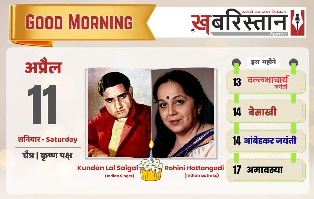 पंचांग के अनुसार, 11 अप्रैल 2026 के दिन का आरंभ वैशाख माह के कृष्ण पक्ष की नवमी तिथि से हो रहा है, जो कि सुबह 12:37 मिनट पर समाप्त हो जाएगी। इसके बाद दिनभर दशमी तिथि रहने वाली है। साथ ही कल शनि देव और हनुमान जी को समर्पित शनिवार के दिन का व्रत रखा जाएगा, जिनकी कृपा से जीवन की तमाम परेशानियों से मुक्ति मिल सकती है।