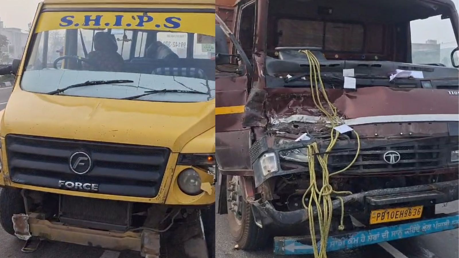 पंजाब में कोहरे के कारण लगातार सड़क हादसे देखने को मिल रहे हैं। ताजा मामला गोराया के नेशनल हाईवे से सामने आया है। जहां स्कूल बस और कैंटर में भीषण टक्कर हो गई। इस हादसे के बाद एक के बाद एक करके 4 गाड़ियां आपस में टकरा गई। जिसके बाद सड़क सुरक्षा फोर्स की टीम मौके पर पहुंची और उन्होंने ट्रक ड्राइवर अस्पताल में भर्ती करवाया। घायल की पहचान हरप्रीत सिंह के रूप में हुई है।