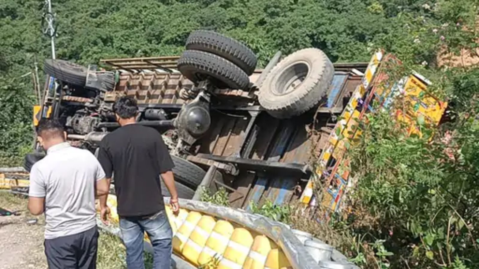 टकराने के बाद खाई में गिरा ट्रक