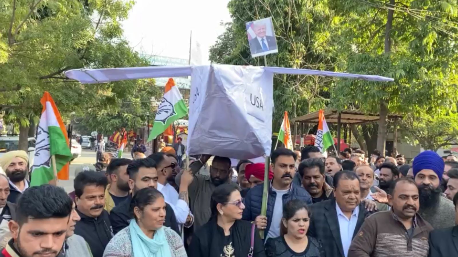 अमेरिका के राष्ट्रपति डोनाल्ड ने पद संभालते ही अवैध रूप से रह रहे 104 भारतीय को डिपोर्ट किया है। वहीं भारत पहुंचने के बाद यात्रियों ने बताया कि उन्हें कैसे कैदी की तरह हाथों में हथकड़ियां और पैरों में बेड़ियां डालकर लाया गया। इस मामले को लेकर आज पूर्व विधायक राजिंदर बेरी की अगुवाई में कांग्रेस भवन से डीसी दफ्तर तक प्रदर्शन किया गया। जिसके बाद डोनाल्ड ट्रंप का पुतला फूंका गया। इस दौरान कांग्रेस ने डोनाल्ड ट्रंप के साथ पीएम मोदी की फोटो पुतले पर लगाकर प्रदर्शन किया।