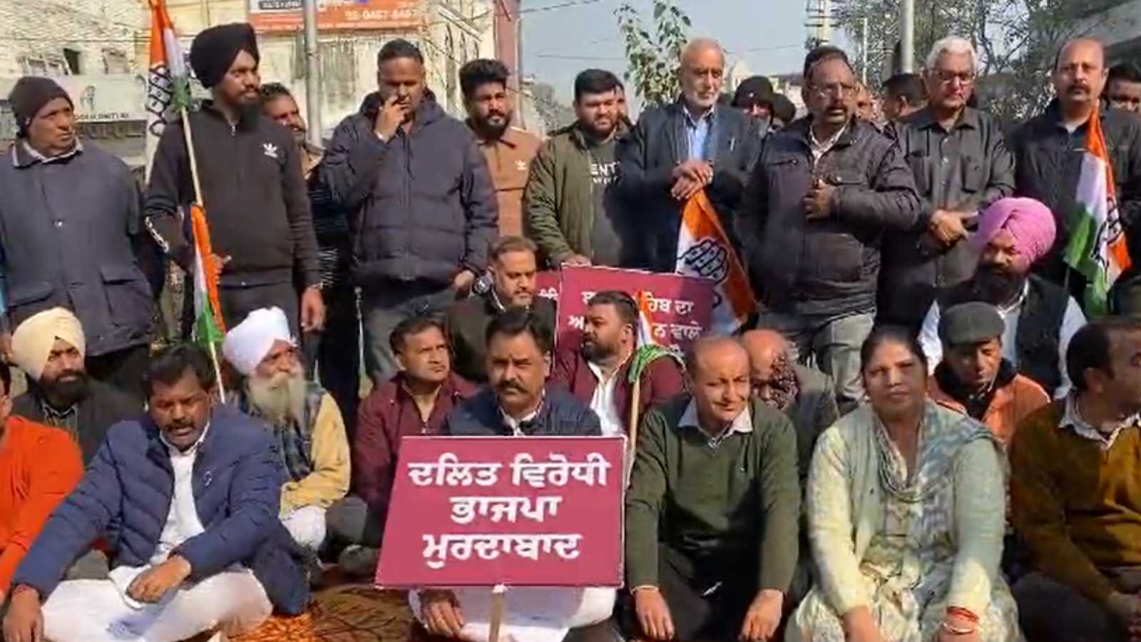 डॉ. भीमराव बीआर अबेंडकर पर गृहमंत्री अमित शाह के दिए गए बयान को लेकर कांग्रेस ने जालंधर में अबंडेकर चौक पर धरना प्रदर्शन किया। कांग्रेस जिला अध्यक्ष राजिंदर बेरी ने पार्टी वर्करों के साथ मिलकर भाजपा के खिलाफ नारे लगाए और कहा कि देश के संविधान के साथ छेड़छाड़ को कांग्रेस बर्दाश्त नहीं करेगी। इस दौरान कांग्रेसी वर्करों ने अमित शाह माफी मांगो, अमित शाह इस्तीफा दो और भाजपा मुर्दाबाद के पोस्टर पकड़े हुए थे।
