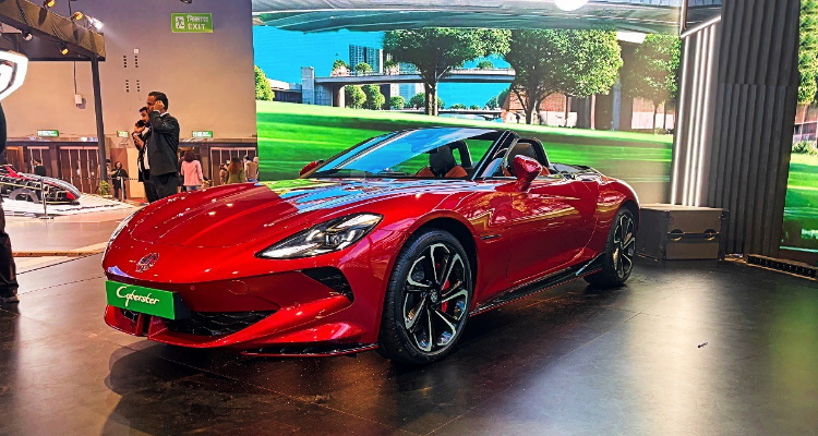 First electric sports car seen at Bharat Mobility Global Expo : जेएसडब्ल्यू एमजी मोटर (JSW MG Motor) ने भारत मोबिलिटी ग्लोबल एक्सपो में देश की पहली इलेक्ट्रिक स्पोर्ट कार ‘MG Cyberster’ को भी शोकेस किया है। दो दरवाजों और दो सीट वाली इस कन्वर्टिबल स्पोर्ट कार ने खूब सुर्खियां बटोरी है। ऑटो एक्सपो 2025 में साइबरस्टर की प्री-बुकिंग शुरू करने की घोषणा की है। कंपनी ने यह भी कहा कि इस कार की आधिकारिक बुकिंग मार्च में शुरू होगी। माना जा रहा है कि इसकी डिलीवरी अप्रैल में शुरू की जा सकती है। MG Cyberster को विशेष रूप से एमजी सेलेक्ट प्रीमियम शोरूम के माध्यम से बेचा जाएगा।