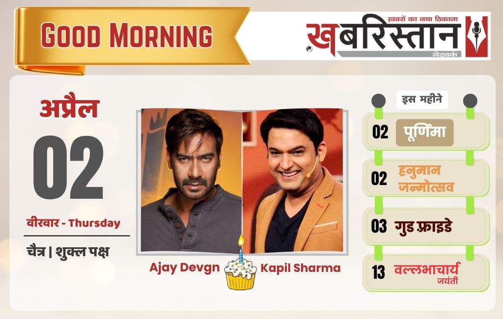 2 अप्रैल को चैत्र शुक्ल पक्ष की पूर्णिमा तिथि और गुरुवार का दिन है। पूर्णिमा तिथि गुरुवार सुबह 7 बजकर 42 मिनट तक रहेगी, उसके बाद प्रतिपदा तिथि लग जाएगी। इसके अलावा 2 अप्रैल को स्नान-दान की पूर्णिमा है।