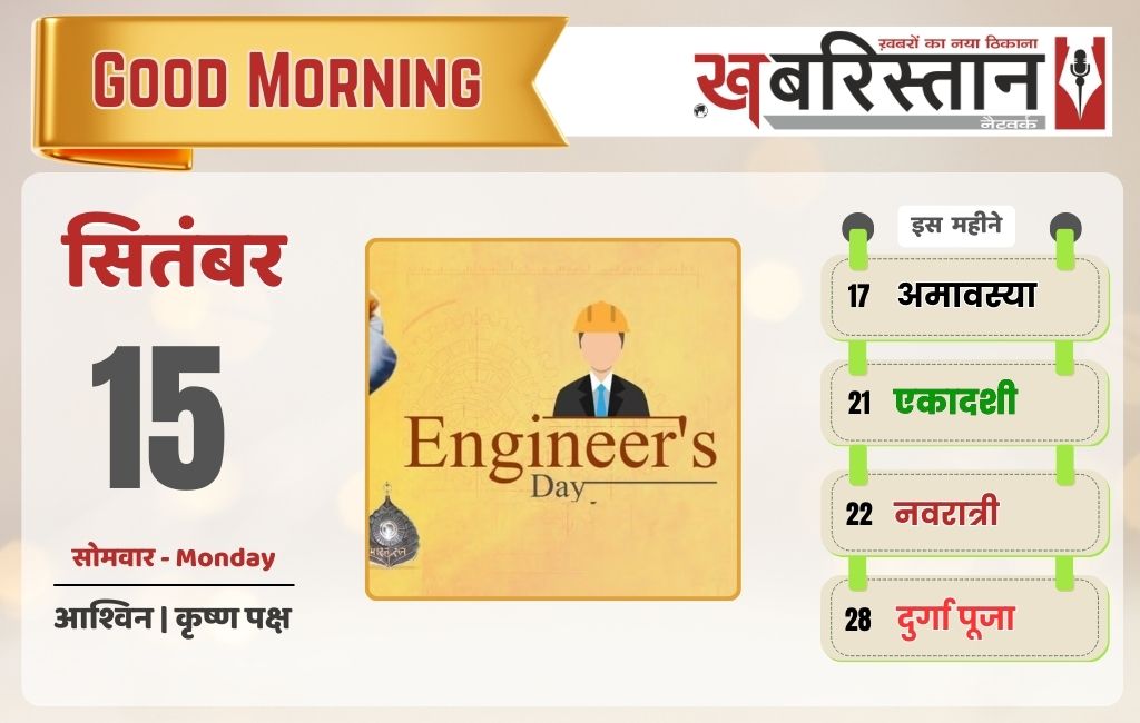 आज 15 सितंबर सोमवार का दिन है। आश्विन माह (Ashwin Month) की आश्विन कृष्ण पक्ष नवमी तिथि 01:31 AM तक उपरांत दशमी ,नक्षत्र म्रृगशीर्षा 07:31 AM तक उपरांत आद्रा , व्यातीपात योग 02:34 AM तक, उसके बाद वरीयान योग , करण तैतिल 02:16 PM तक, बाद गर 01:31 AM तक, बाद वणिज है।