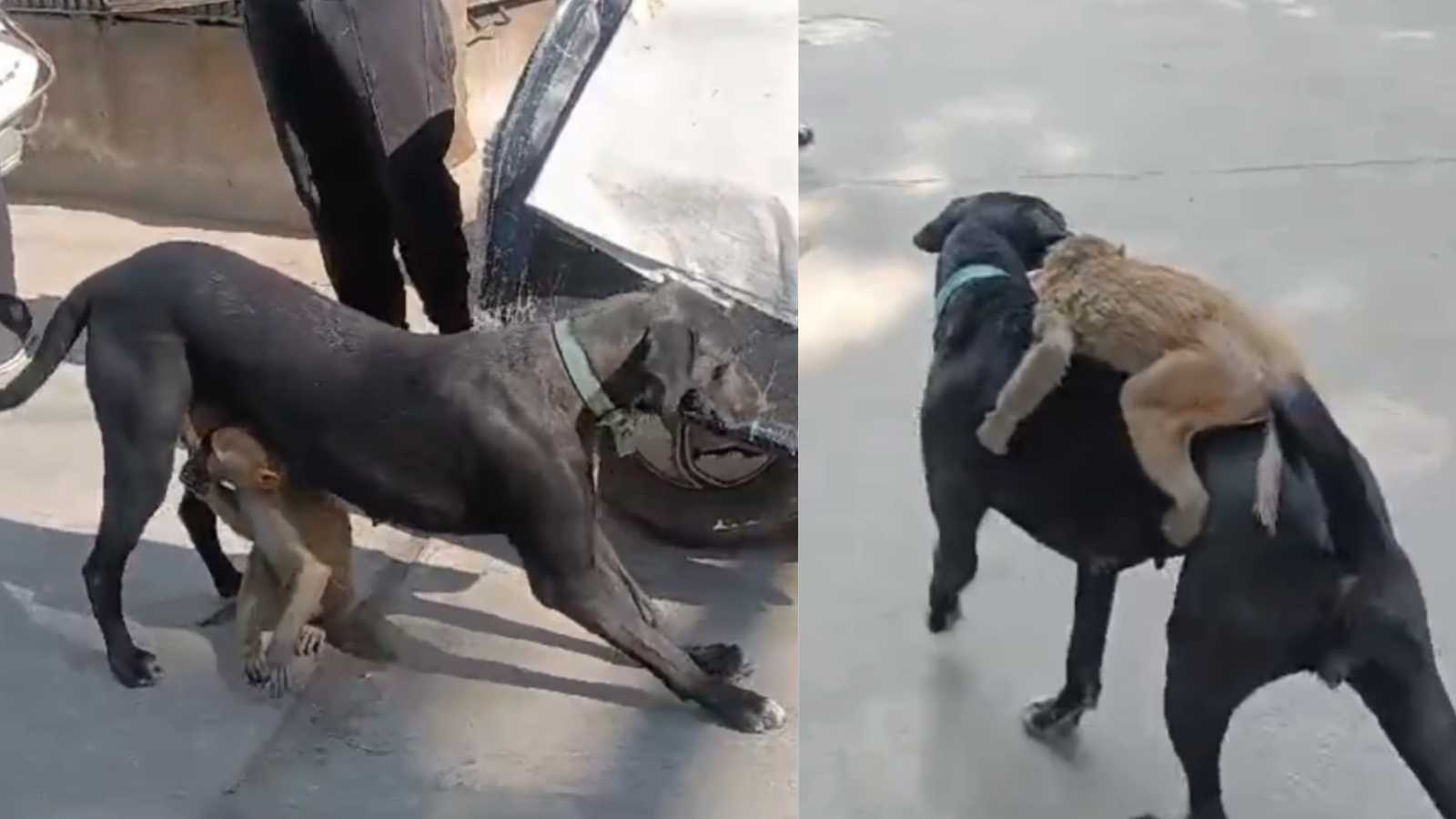 कलयुग में इंसान ही इंसान का दुश्मन बना हुआ है, वह एक दूसरे की खुशी तो क्या ही देखनी किसी का साथ भी नहीं निभा सकते। वही बात करें तो एक जालंधर से तस्वीर सामने आई है, जिसमें मंकी और डॉगी प्रेम और मोहब्बत की मिसाल कायम करते हुए दिखाई दे रहे हैं। यह तस्वीर जालंधर के कोट किशन चंद इलाके की हैं।