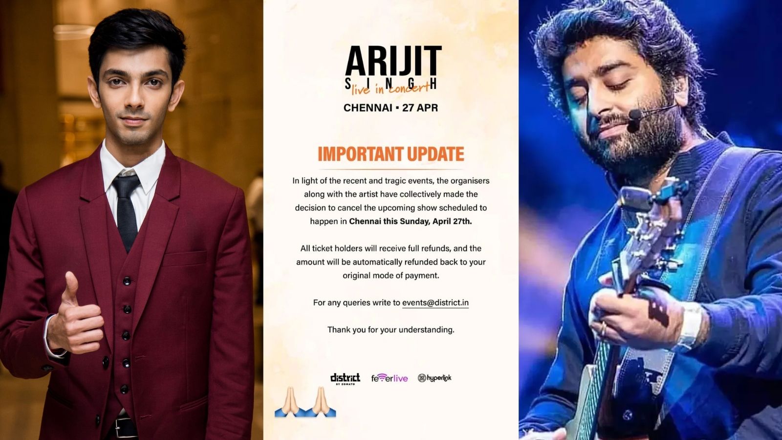 उन्होंने पोस्ट में लिखा- हाल की दुखद घटनाओं के मद्देनजर, आयोजकों और कलाकारों ने सामूहिक रूप से यह निर्णय लिया है कि इस रविवार 27 अप्रैल को चेन्नई में होने वाले Upcoming शो को रद्द कर दिया जाए। सभी टिकट धारकों को पूरी धनराशि वापस कर दी जाएगी। आपने स्थिति समझी, उसके लिए धन्यवाद।