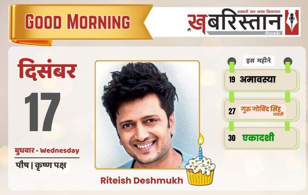 17 दिसंबर 2025 को पौष माह के कृष्ण पक्ष की त्रयोदशी तिथि है। इस तिथि पर सुकर्मा नक्षत्र और विशाखा योग का संयोग बन रहा है। दिन के शुभ मुहूर्त की बात करें तो बुधवार को कोई अभिजीत मुहूर्त नहीं है। राहुकाल दोपहर 12:17-13:34 मिनट तक रहेगा। चंद्रमा वृश्चिक राशि में संचरण करेंगे।