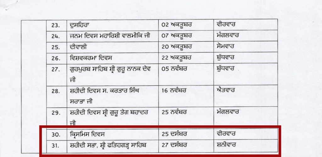 दरअसल 25 दिसंबर को क्रिसमिस को लेकर छुट्टी की गई है। जबकि 26 दिसंबर को शहीदी दिवस को लेकर आरक्षित छुट्टी है। तो वहीं 27 दिसंबर को शहीदी सभा को लेकर छुट्टी की गई है।