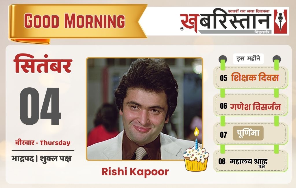 04 सितंबर 2025 को भाद्रपद माह के शुक्ल पक्ष की द्वादशी तिथि है। इस तिथि पर उत्तराषाढ़ा नक्षत्र और सौभाग्य योग का संयोग बन रहा है। दिन के शुभ मुहूर्त की बात करें तो गुरुवार को अभिजीत मुहूर्त 11:51 − 12:41 मिनट तक रहेगा। राहुकाल दोपहर 13:50 − 15:23 मिनट तक रहेगा।