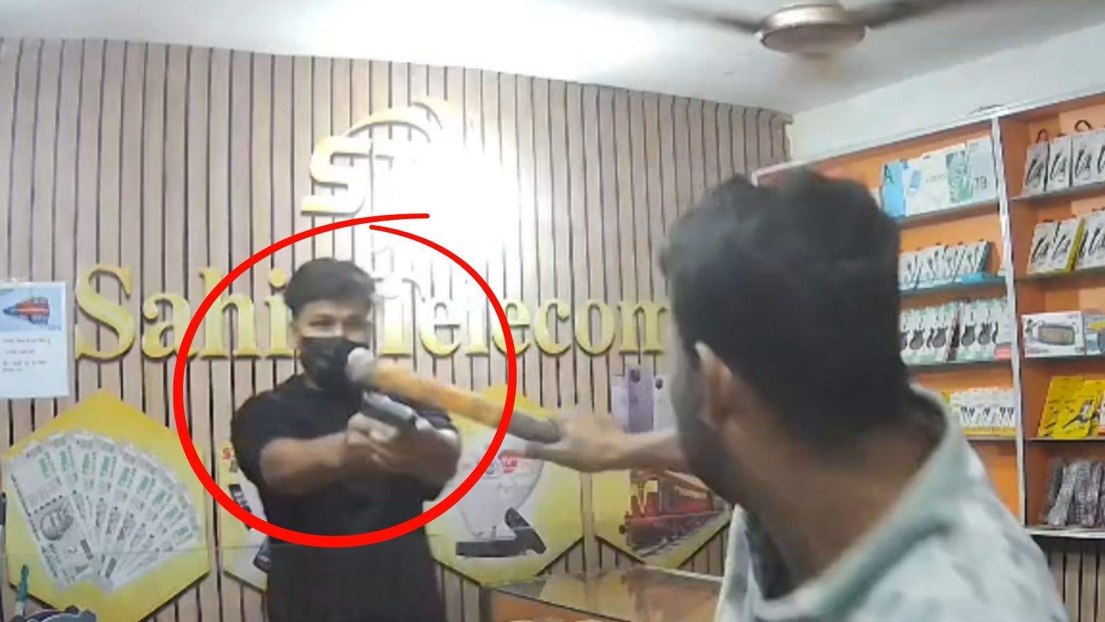 यह घटना 2 अप्रैल साढ़े 9 बजे की है। सीसीटीवी फुटेज में देखा जा सकता है कि 2 लुटेरे साहिल टेलीकॉम नाम की दुकान पर पहुंचते हैं। इस दौरान एक लुटेरा दुकान के अंदर घुसकर दुकानदार से पैसे मांगता है। जब दुकानदार पैसे देने का विरोध करता है तो लुटेरा पिस्तौल निकाल लेता है और उस पर फायरिंग कर देता है। इस दौरान लुटेरे का दूसरा साथी भी दुकान के अंदर घुस जाता है। वह भी तेजधार हथियार दिखाकर उसे पैसे देने के लिए कहता है।
