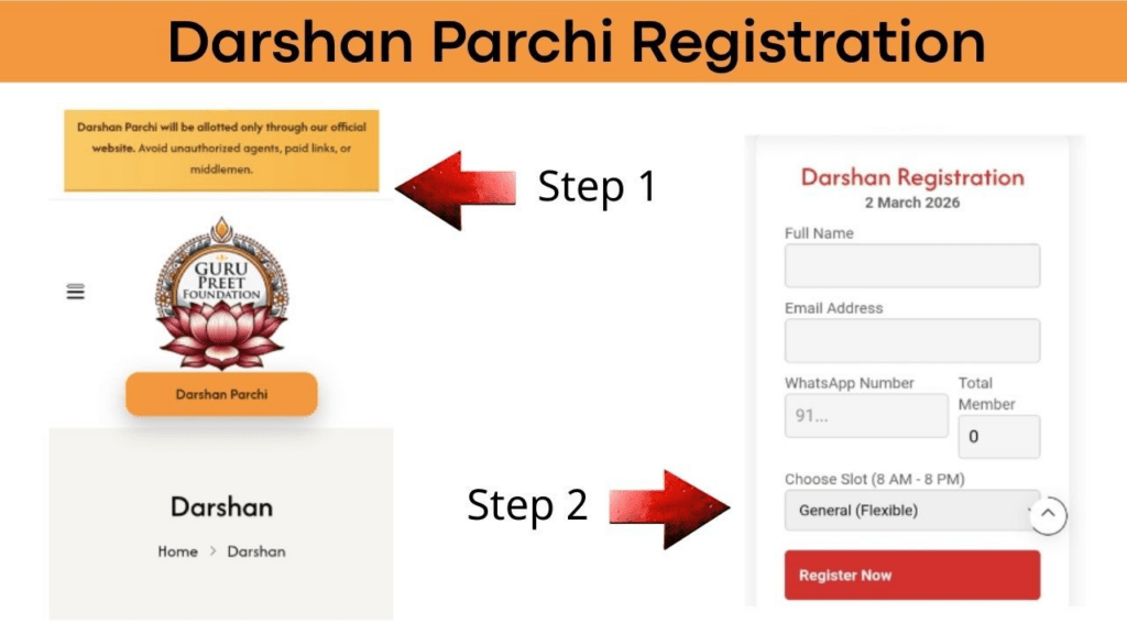 लिंक पर क्लिक करने के बाद दर्शन पर्ची की आप्शन आएगी, जिस पर क्लिक करने के बाद आपको नाम, ईमेल एड्रेस, फोन नंबर और कितने लोग दर्शन करना चाहते हैं ये भर के रजिस्टर करना होगा। इसके बाद आपको दर्शन पर्ची मिल जाएगी।