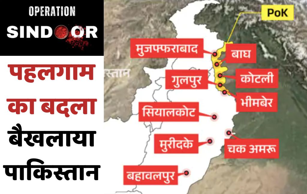 खबरिस्तान नेटवर्क। भारत ने पाक अधिकृत कश्मीर में नौ आतंकी ठिकानों पर एयर स्ट्राइक की है। ये हमला पहलगाम हमले के 15 दिन बाद बुधवार रात डेढ़ बजे ‘ऑपरेशन सिंदूर’ के तहत बहावलपुर, मुरीदके, बाघ, कोटली और मुजफ्फराबाद में किए गए। इन्हीं ठिकानों से भारत में आतंकी आप्रेशन चल रहे थे। पाकिस्तान की स्थानीय रिपोर्ट्स के मुताबिक, बहावलपुर में एयर स्ट्राइक के बाद 30 लोगों की मौत हुई है। मीडिया रिपोर्ट्स के मुताबिक, जैश-ए-मोहम्मद के 4, लश्कर-ए-तैयबा के 3 और हिज्बुल मुजाहिदीन के 2 आतंकी ठिकानों पर अटैक किया गया है।