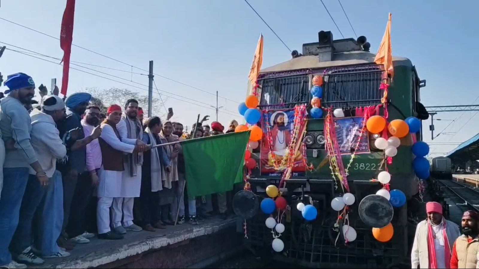 श्रद्धालुओं ने ट्रेन में बैठने से पहले BSF चौक से लेकर स्टेशन तक शोभायात्रा निकाली। स्टेशन पर ट्रेन को फूलों और हार के साथ अच्छी तरह से सजाया गया था। श्रद्धालुओं की ट्रेन को होशियारपुर के सांसद राजकुमार चब्बेवाल, विधायक राजविंदर कौर थियाड़ा, रॉबिन सांपला ने हरी झंडी देकर रवाना किया।