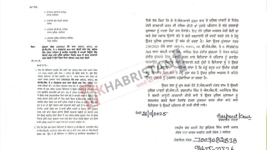 पीड़ित बच्ची की मां ने अब वरिष्ठ पुलिस अधिकारियों पर भी गंभीर आरोप लगाए हैं। शिकायत में उन्होंने एसीपी (डीएसपी) गगनदीप सिंह और थाना रामामंडी के एसएचओ मनजिंदर सिंह पर धमकाने और अभद्र भाषा का प्रयोग करने का आरोप लगाया है।मां के अनुसार, दोनों अधिकारियों ने चेतावनी दी कि अगर ASI मंगत राम और उसकी टीम के खिलाफ कार्रवाई की कोशिश की गई, तो परिवार के सरकारी नौकरी करने वाले सदस्य को नुकसान पहुंचाया जा सकता है।