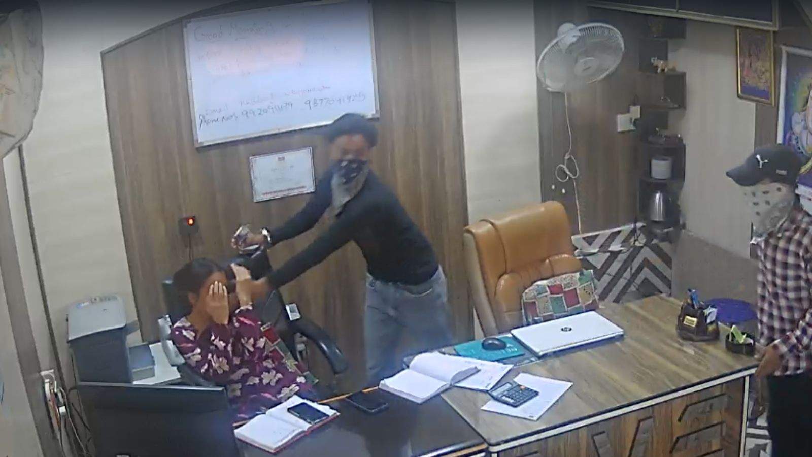 लेकिन लड़की दोबारा से किसी के साथ फोन पर बात करने लग जाती है। इसी दौरान ब्लैक शर्ट पहले लड़का लड़की के पीछे जाकर खड़ा हो जाता है और फिर उसके मुंह को दबोचा और तिजौरी से नगदी लेकर दोनों बाहर निकल जाते हैं। बाहर निकलने के बाद दोनों तीसरे साथी के साथ मौके से फरार हो जाते हैं।